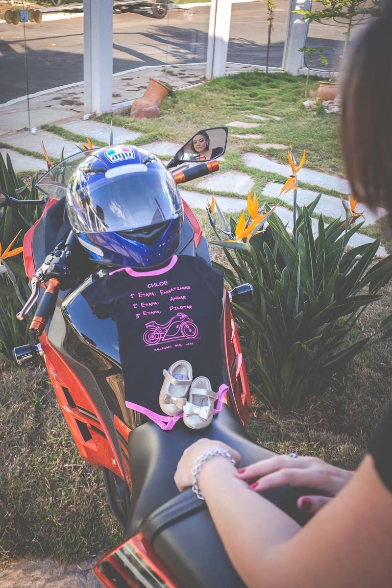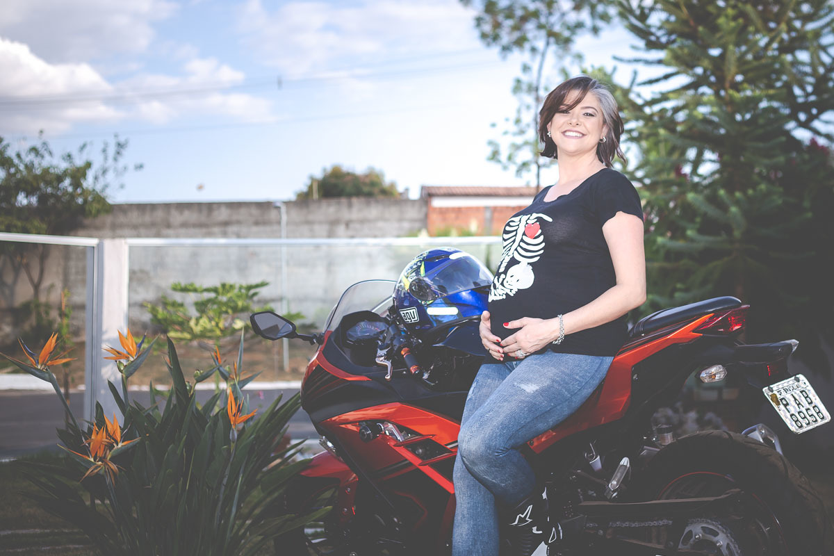 Que delícia de ensaio! Em casa, com os pais e com as amigas Lilian mostrou todo o seu estilo na espera pela sua filha Chloe! Posando com uma de suas paixões - a moto, além das orquídeas e do jardim da casa e com o Elefante encomendado especialmente para a tão aguardada bebê!